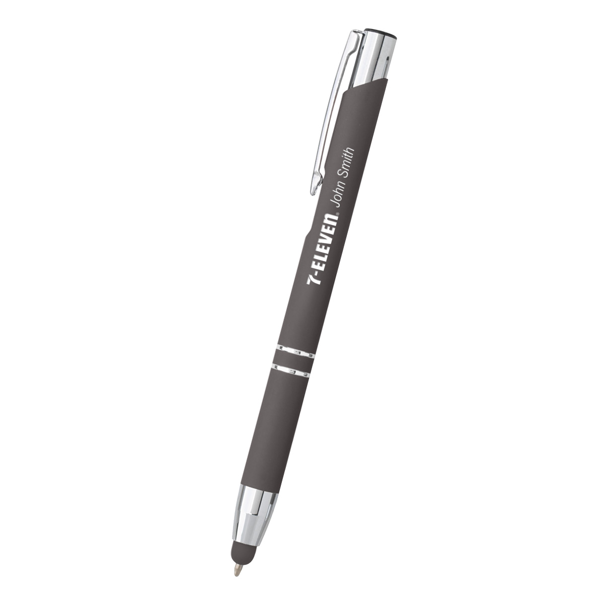 Plunger Action | Rubberized Aluminum Pen | Push Down To Use Pen And Retract To Use Stylus.